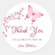 El cerezo rosa bonito florece una hermosa mariposa rosada y gracias palabra en un elegante guión caligráfico. Este pegatina coincide con mi pequeña papelería de ducha de mariposa. Personalizar con tu nombre.