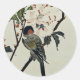 Pegatina Redonda Flores de cerezo y aves pequeñas