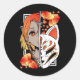 Pegatina Redonda Flores de espada Samurai, máscara de Chica anime j