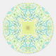Pegatina Redonda Flores de jardín retro en verde y amarillo