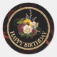 Pegatina Redonda flores de Otoño Cumpleaños feliz