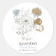 Pegatina Redonda Flores de verano gris azul claro y bronceado