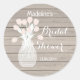 Pegatina Redonda Flores en Tarro sobre Mesa de Madera para Desayuno
