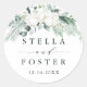 Pegatina Redonda Flores Evergreen y Cotton Elegante Boda