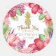 Pegatina Redonda Flores exóticas tropicales & Piña dorada elegante