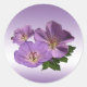 Estos pegatinas están decorados con flores magenta moradas de gránulos geranios, cada una con un bonito centro amarillo dorado y follaje verde. Están colocadas sobre un fondo de gradiente lila pálido. ¡Qué maravilloso regalo para un jardinero!