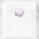 Pegatina Redonda flores moradas románticas hojas verdes botánicas