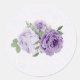 Pegatina Redonda flores moradas románticas hojas verdes botánicas