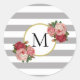 Pegatina Redonda Flores retro rayadas blancas y negras monograma
