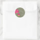 Pegatina Redonda Flores rojas rosadas té café verde favor de la bod