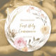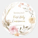 Pegatina Redonda flores rosadas beige Primera comunión sagrada