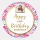 Pegatina Redonda Flores Rosadas Chic, Foto Personalizada, Feliz Cum