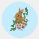 Pegatina Redonda Flores rosadas de conejo conejo conejo