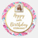 Pegatina Redonda Flores Rosadas Elegantes, Foto Personalizada, Feli