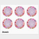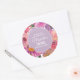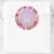 Pegatina Redonda Flores rosadas púrpuras fiesta de cumpleaños númer