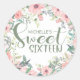 Pegatina de cumpleaños divertida y elegante para fiesta de Dulces 16 para tu celebración de cumpleaños en primavera o verano. Hermosas flores de acuarela rosadas sonrosadas y hojas verde salvia en una pegatina blanca con una fuente de escritura caprichosa que destaca. Estas son perfectas como sellos de sobre o favores de fiesta. Contáctame para obtener ayuda con tus personalizaciones o para solicitar productos adicionales de Zazzle que coincidan o coordinen con tu evento.