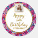 Añade un toque especial a los sobres, bolsos de favores, regalos y más con estos pegatinas super adorables. El diseño presenta una foto subida y 4 líneas de texto personalizado resaltadas por falsos acentos dorados - todo enmarcado en un patrón de fondo de flores rosa, púrpura y azul bonito. Perfecto para cumpleaños, duchas de novias o bebés, bodas, jubilación, graduación o fiesta de aniversario y más.