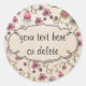 Hermoso y caprichoso patrón con flores rosadas sobre tallos curling y giratorios con hojas verdes brillantes sobre un fondo beige claro. El marco es el lugar perfecto para personalizar este producto con su nombre o un mensaje corto. Este pegatina también funcionaría muy bien para etiquetar los productos de baño o para llenar botellas simples con una etiqueta de bonito.