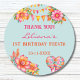 Celebre con un estilo vibrante con estos coloridos y personalizados Fiesta 1er cumpleaños gracias pegatinas! Perfecto para darle un toque de diversión a tus favoritos, este pegatina colorido tiene un fondo azul festivo adornado con flores rosa, naranja y amarillo brillantes. Con el espíritu de la Primera Fiesta de Cumpleaños de México, también se exhiben maracas florales rosadas y naranjas. El alegre diseño resume la animada y alegre esencia de la ocasión. "1ª Fiesta de Cumpleaños" y "Gracias" se exhiben con elegancia, lo que hace que sea una manera memorable y sincera de mostrar aprecio a sus invitados en el primer fiesta de cumpleaños, almuerzo o picnic de su pequeña persona con temática española.