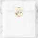 Pegatina Redonda Flores rosas, huevos, flamencos y acuarela confita