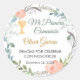Pegatina Redonda Flores rosas y cáliz Primera comunión