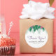 Este colorido boda gracias pegatina presenta un ilustracion de flores tropicales de colores vivos y ramas de hojas de palma verdes. Personalizar este pegatina colorido y moderno para tu boda en la playa.