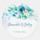 Pegatina Redonda Flores verdes verde azuladas azules sobre boda flo