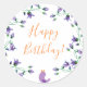 Pegatina Redonda Flores violetas azules mareaban el cumpleaños feli