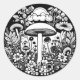 Pegatina Redonda Flores y champiñones negros y blancos