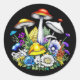 Pegatina Redonda Flores y hongos mágicos y caprichosos
