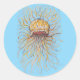 Una medusa llamativa se representa con tendriles coloridos y fluidos. Las intrincadas líneas de blues y naranjas vibrantes dan un sentido de movimiento y gracia. Esta imagen capta la delicada belleza de la vida marina con un toque artístico.