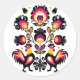 Flores folclóricas y composición de gallos negros, rosas y amarillos de Lowicz (región de Polonia). Pegatina del folclore y sello de la envoltura. Niza como regalo para alguien que ama el arte popular y las cosas únicas