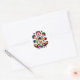 Pegatina Redonda Folclore con gallos negros, rosas y amarillos