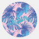 Pegatina Redonda Foliage tropical rosa y azul personalizado