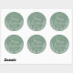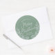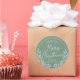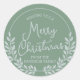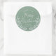 Clásicos pegatinas redondos en verde invernal con marco foliage gris redondo y "Feliz Navidad" con letras de escritura grises. Hay dos tamaños disponibles.