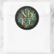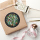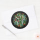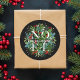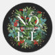 Las pegatinas redondas personalizadas presentan la palabra NOEL entre hojas elegantes y bayas rojas, blancas y doradas con tu nombre y saludo en letra blanca chic. Artículos COINCIDENTES en nuestra tienda.