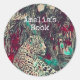 Pegatina Redonda Folleto de Gato de la Jungla de Monograma