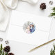 El diseño de pegatina de foto enmarcada con copo de nieve presenta una guirnalda redonda de delicados copos de nieve blancos que enmarcan la foto como un diseño superpuesto.