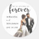 Hemos decidido por el Pegatina redondo clásico de color negro de la novia Boda por siempre. Puede cambiar el texto, con el nombre de novia y novio, fácilmente personalizable y personalizable
