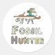 El gráfico Fossil Hunter muestra a un entusiasta coleccionista examinando parte de un fósil con los restos aún enterrados debajo del suelo. Debajo están las palabras "Cazador fósil" con las letras ocasionalmente rotas como un fósil. Un diseño divertido para los aficionados a la caza de fósiles.