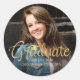 Pegatina Redonda Foto con guion manuscrito de oro de graduado