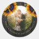Una rústica foto redonda de bodas rurales crea tu propio sello para sobres o etiqueta de regalo a favor con ramos de girasol dorado amarillo sobre un granero marrón oscuro. +++++++++ Fácil de personalizar con el texto y la foto! ++++++++ Perfecto para una rústica invitación o favor de boda en casa de campo.