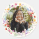 Pegatina Redonda Foto de graduación floral acuarela boho