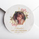 Pegatina Redonda Foto de Primera Comunión Orquídeas Rosa Dorado Már