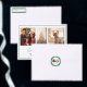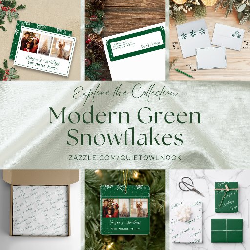 Celebra la temporada con un toque personalizado. Este moderno pegatina redondo presenta un diseño elegante con un delgado borde verde y un estampado festivo de copos de nieve sobre un verde esmeralda exuberante, que evoca los pensamientos de la nieve en los árboles. Lo que hace que este pegatina sea realmente especial es su capacidad de ser completamente personalizado. Sube tus fotos familiares favoritas, prepara tu propio y sincero saludo de vacaciones, y agrega tu nombre de familia para hacer de este pegatina único el tuyo. Ya sea que esté compartiendo recuerdos alegres o enviando cálidos deseos, este pegatina le permite tener una impresión duradera.