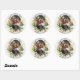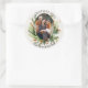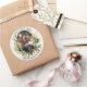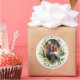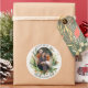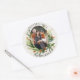 Pegatina Redonda Foto familiar de hojas verdes Feliz Navidad
