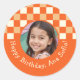 Pegatina Redonda Foto personalizado Plaid Gingham Birthday Party