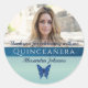 Elegante, elegante, azul mariposa Quinceanera 15 años Gracias pegatina, con foto personalizado del chica.