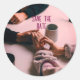 Pegatina Redonda fotos boho rosa para guardar la fecha QR añadir no