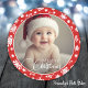 Celebra la temporada de fiestas con esta pegatina navideña, que presenta un divertido diseño de copos de nieve rojos y blancos que resume perfectamente el espíritu de la temporada. Personalice añadiendo su foto favorita, añadiendo un toque personal a sus saludos de vacaciones. Las alegres palabras "Feliz Navidad" aparecen en un alegre y elegante tipo de letra, creando un ambiente cálido y acogedor. Perfecto para sellar sobres, decorar regalos, o agregar un toque personal a las tarjetas de vacaciones, este pegatina es una manera encantadora de repartir alegría de los Navidades.